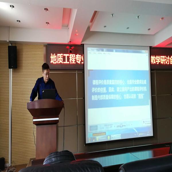 最后,勘察工程系主任郭威教授结合专业认证的OBE核心理论,以目标为导向,以关注学习学习效果为目的的课程质量评价方法和课程质量评价报告进行了汇报和经验交流。
