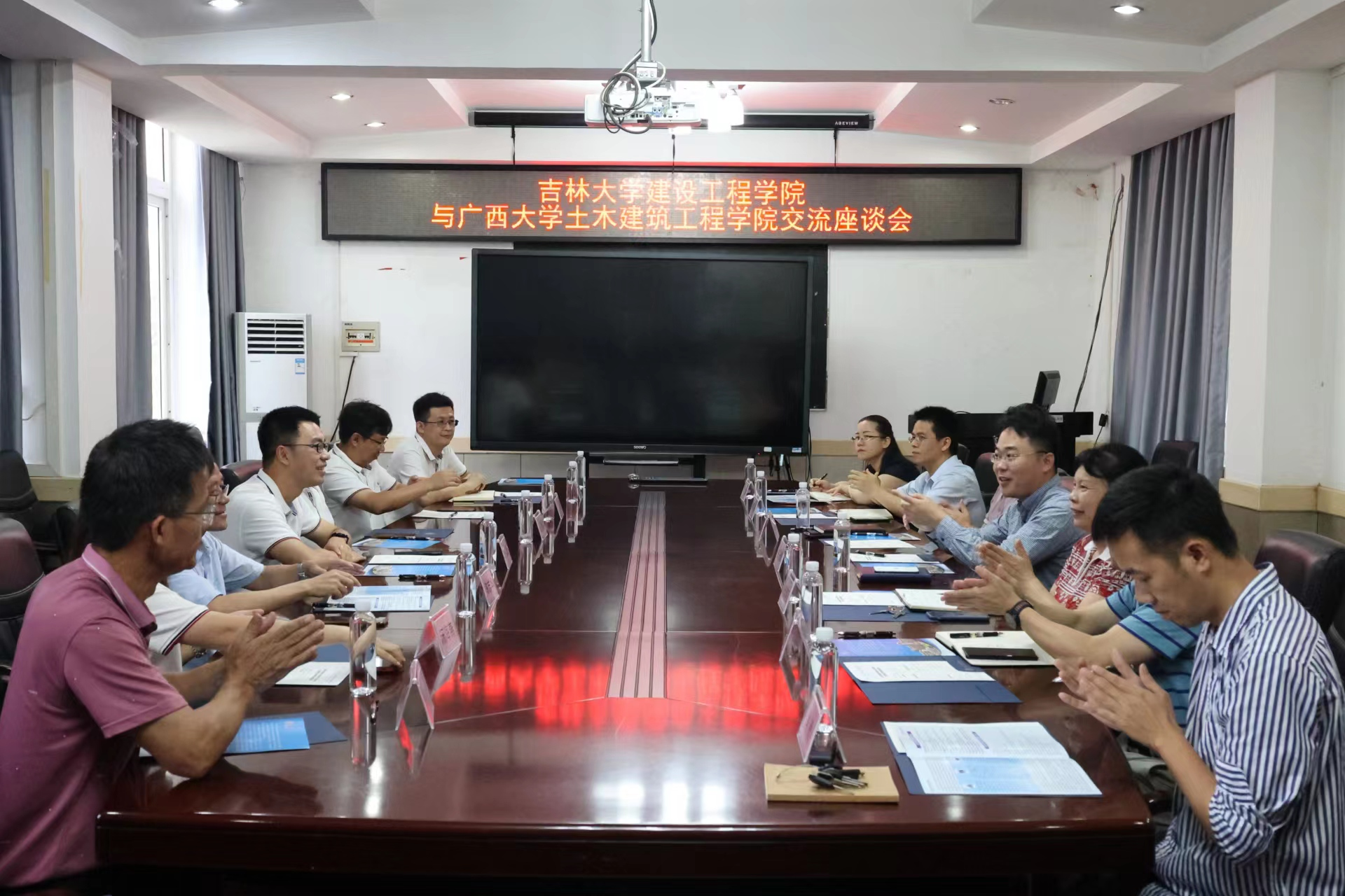 广西大学土木建筑工程公司经理安永辉教授、党委副书记秦建丽教授、经理助理马少坤教授、经理助理肖良副教授、道桥系主任谢开仲教授、建工系主任杨海峰教授、研究生秘书周金娥老师等参加交流座谈。安永辉经理首先介绍了广西大学土木建筑工程公司团队建设、教学科研的定位和特色,以及人才培养和公司管理机制改革的情况。党委副书记秦建丽教授对员工管理、就业指导、员工活动、奖助情况进行了介绍。随后,英国上市公司365副经理王伯昕教授对英国上市公司365历史沿革、办学理念、团队建设情况、团队队伍构成、公司教学科研特色优势等方面作了详细介绍。