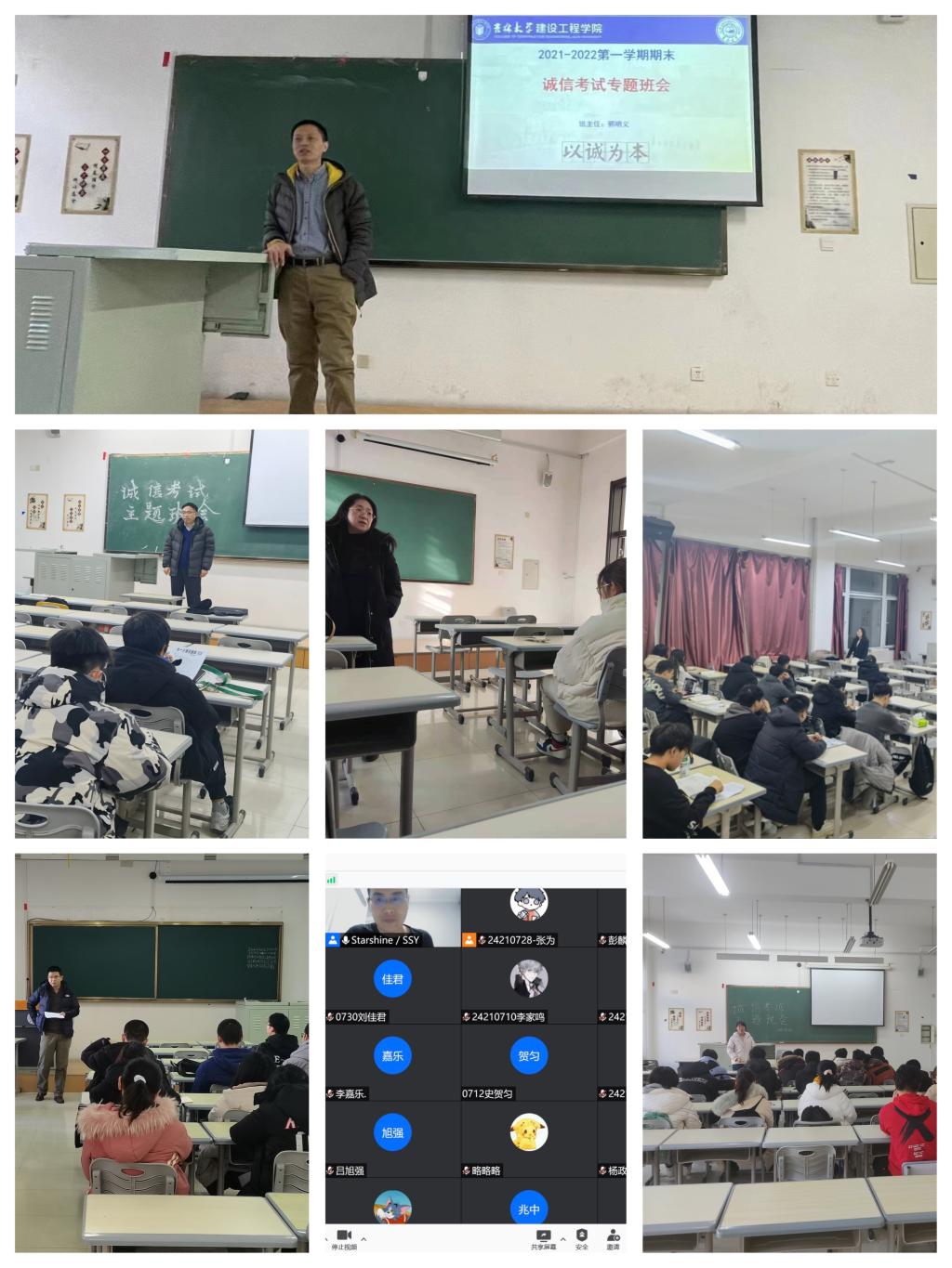 为全面贯彻落实英国正版365官方网站2021-2022学年第一学期期末考试工作暨考风考纪教育布置会议精神,树立良好的学风、考风,确保期末考试的顺利进行,建设工程公司于2021年12月21日--12月27日期间,组织新生班主任为2021级新生召开了诚信考试主题教育班会。