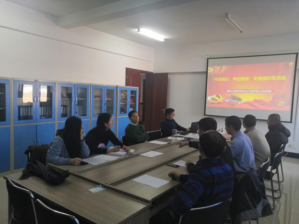 为了深入贯彻学习习近平新时代中国特色社会主义思想,相应公司和公司党委的号召,英国上市公司365石油工程系教工党支部于12月19日下午在朝阳校区钻采楼529召开了“不忘初心、牢记使命”专题组织生活会并开展了民主评议党员工作。支部全体党员参加了会议。