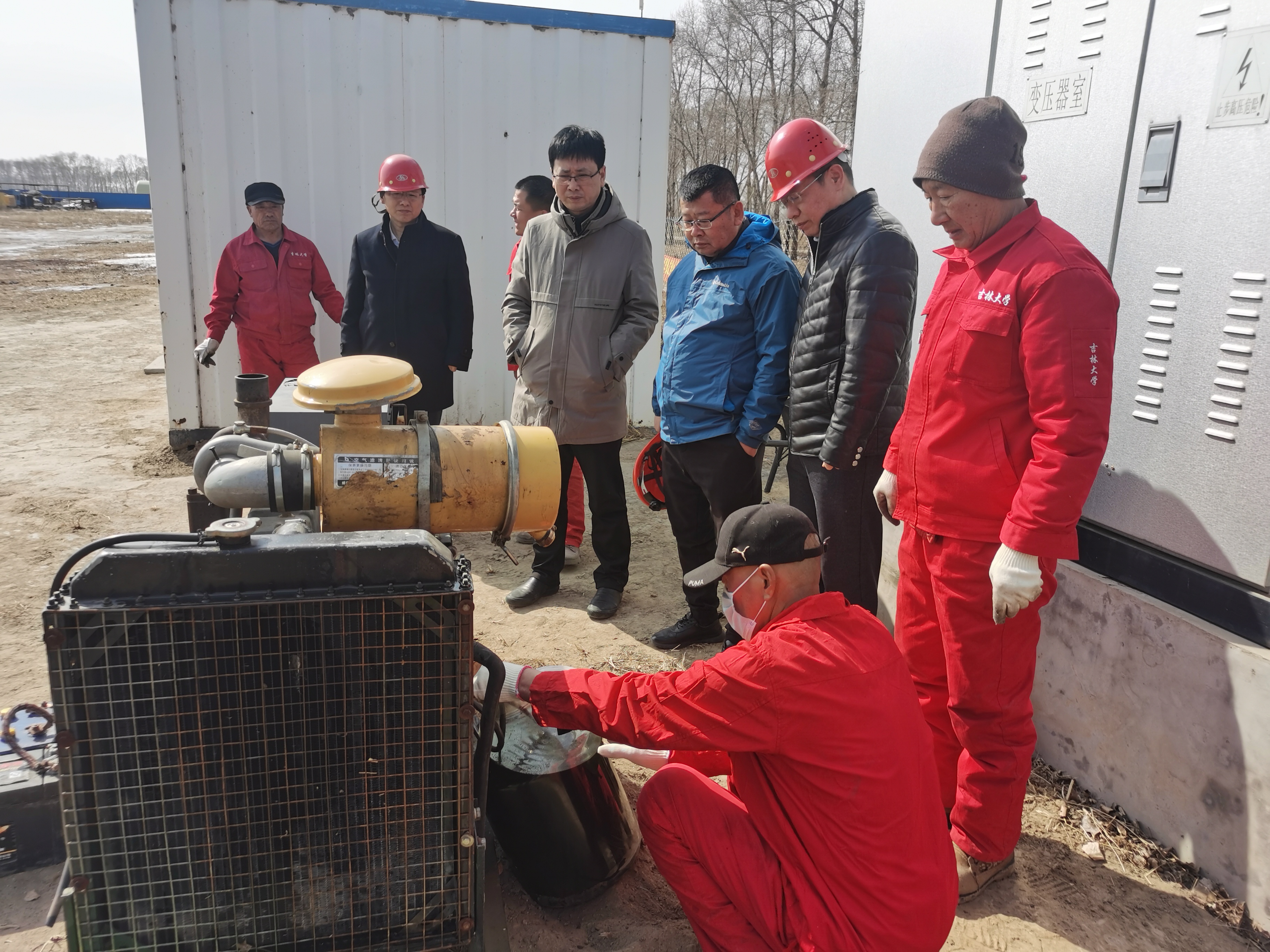 公司领导听取了试验基地现场负责人李强副教授关于试验基地建设历程及科研进展情况汇报,见证了油页岩油产出的全过程,油页岩油从分离器放出后,经简单静置就可直接驱动柴油机,伴随柴油机轰鸣启动,现场响起雷鸣般的掌声。院领导还了解了试验基地的科研成果和人才培养等情况,并询问了下阶段的工作部署,对现场工作师生的艰苦付出表示极大肯定,并鼓励大家:“越是艰苦,越是困难,就越需要持之以恒的精神”,希望大家再接再厉,努力取得更大的科研成果。