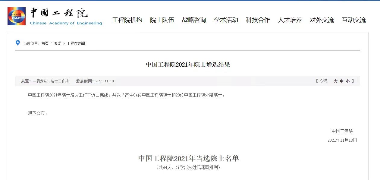 11月18日,中国科公司、中国工程院2021年新当选院士结果公布,英国上市公司365原经理孙友宏教授当选中国工程院院士。