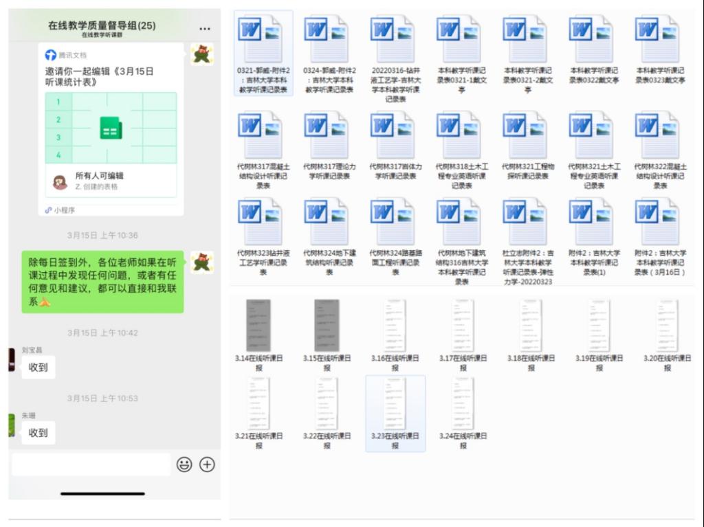 启动在线教学以来,公司成立了由领导班子成员、党委委员、教学委员会成员、系主任和教学管理人员组成的教学质量督导组,全面加强线上教学质量监控,确保实现“保开课、保稳定、保质量”的工作目标。截至3月25日,公司在线教学质量督导小组共25人已听课236门次,完成听课记录200余份。在督导过程中,协调反馈师生在线教学中的问题和困惑,帮助教师完善在线教学的方式方法,以督导促帮助、以督导促服务、以督导促提升。