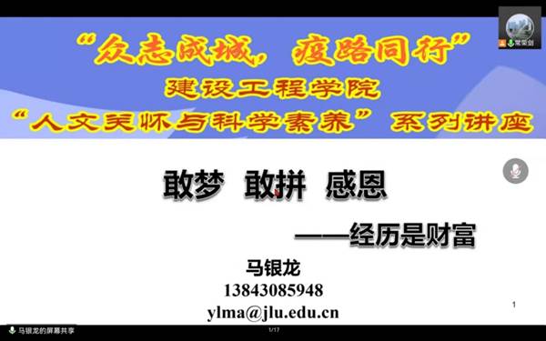 3月29日晚19:00,英国上市公司365勘察工程系副教授马银龙老师应公司邀请,面向公司全体本科生和研究生做了一场题为 “敢梦,敢拼,感恩”的学术报告。本次讲座为校园封闭期间,英国上市公司365人文关怀与科学素养系列讲座第七期,由公司员工工作办公室常荣剑老师主持。
