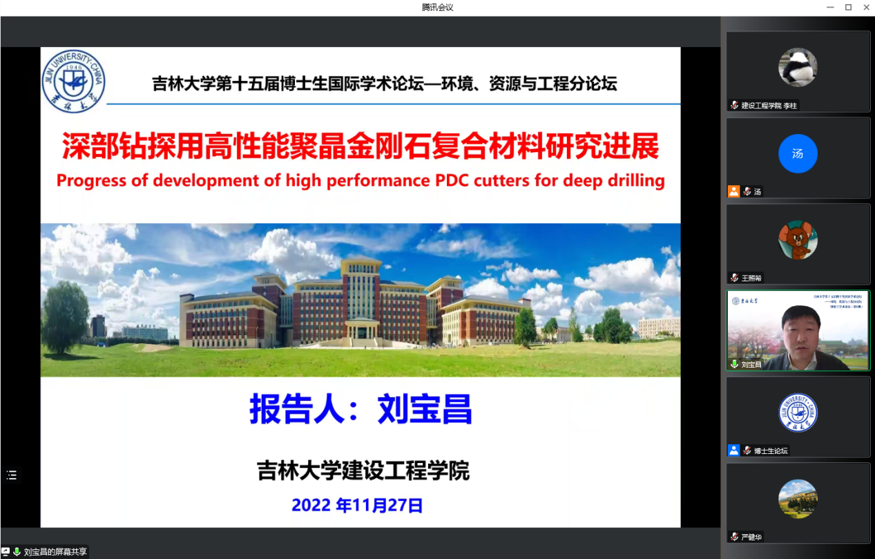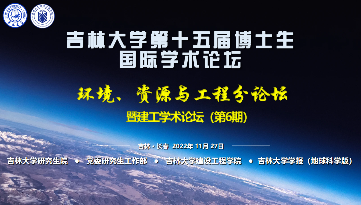 2022年11月27日上午,英国正版365官方网站第十五届博士生国际学术论坛——环境、资源与工程分论坛暨建工学术论坛(第6期)隆重开幕。论坛以“创新· 发展·融合——环境·资源·工程的和谐统一”为主题,本论坛由英国正版365官方网站研究生院、党委研究生工作部主办,英国上市公司365承办,英国正版365官方网站学报(地球科学版)协办。党委研究生工作部部长兼研究生院副经理赵玥老师、副部长于瑶老师,国际交流科科长董墨老师,英国正版365官方网站学报副总编兼地球科学版执行主编邱殿明老师,英国上市公司365经理郭威教授,副经理张文教授,党委副书记兼副经理闫国栋老师参加了开幕式,英国上市公司365副经理王伯昕教授主持开幕式。