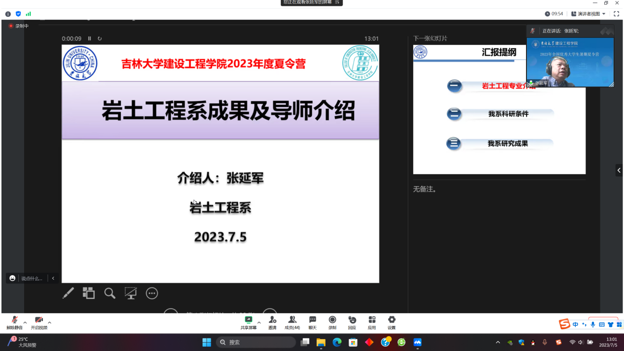 7月5日下午,公司举办了地质工程学术论坛和土木工程学术论坛,公司地质工程专业、土木工程专业八位专家教授分别为营员同学们做了精彩的学术报告,与营员们在线上展开热烈讨论。使营员对各专业有了比较深入的认识,同时对各专业的研究领域和科研前景也有了更深入的了解。