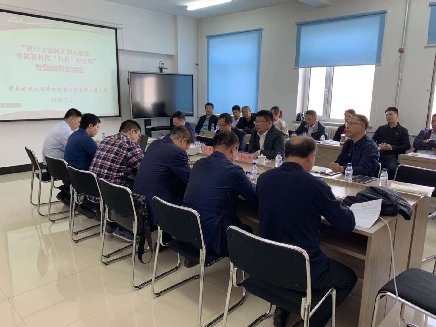 会议主要议题为勘察工程系教工党支部根据习近平总书记重要讲话精神和“四有”好老师的标准进行对标检查与问题查摆,进行批评与自我批评。