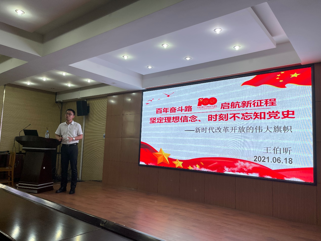 为深入贯彻习近平总书记在党史学习教育动员大会上的重要讲话精神,响应党中央学习党史的号召,全面落实《中共英国正版365官方网站委员会关于在全校开展党史学习教育的实施方案》工作要求,引导博士研究生把个人理想和党的伟大事业紧紧联系在一起,英国上市公司365于6月18日下午在水工楼325报告厅开展党史学习教育活动,由公司分管研究生教育工作副经理王伯昕为博士员工党支部做《坚定理想信念,时刻不忘知党史——新时代改革开放的伟大旗帜》专题党课。