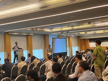 彭赛宇博士做了题为“Experimental study on the effect of polyacrylamide solution on decomposition and formation of methane hydrate”的学术报告,研究了以聚丙烯酰胺为代表的水基压裂液稠化剂对甲烷水合物分解与形成的影响规律,明确了实验条件下的溶液浓度对水合物分解速率的抑制/促进效果,阐明了聚丙烯酰胺在水合物形成的不同阶段的作用效果和机理,为水合物储层改造工作提供了数据参考。研究成果获得了现场国内外专家学者的一致认可,并在会后与朱拉隆功大学和中科院地质与地球物理研究所的专家们进行了进一步的交流。