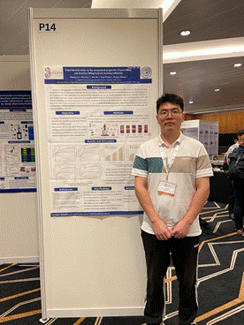 李一铭博士做了题为“Experimental study on mechanical properties of pore-filling and fracture-filling hydrate-bearing sediments”的海报展示,研究了相同水合物饱和度条件下孔隙填充型和裂隙填充型水合物沉积物力学特性的差异性,利用自主研发的低温高压三轴仪,揭示了不同水合物填充特征对沉积物强度参数及变形特性的影响规律,研究工作得到了与会专家的肯定,回答了国内外学者关于裂隙填充型水合物沉积物制备方法的提问。